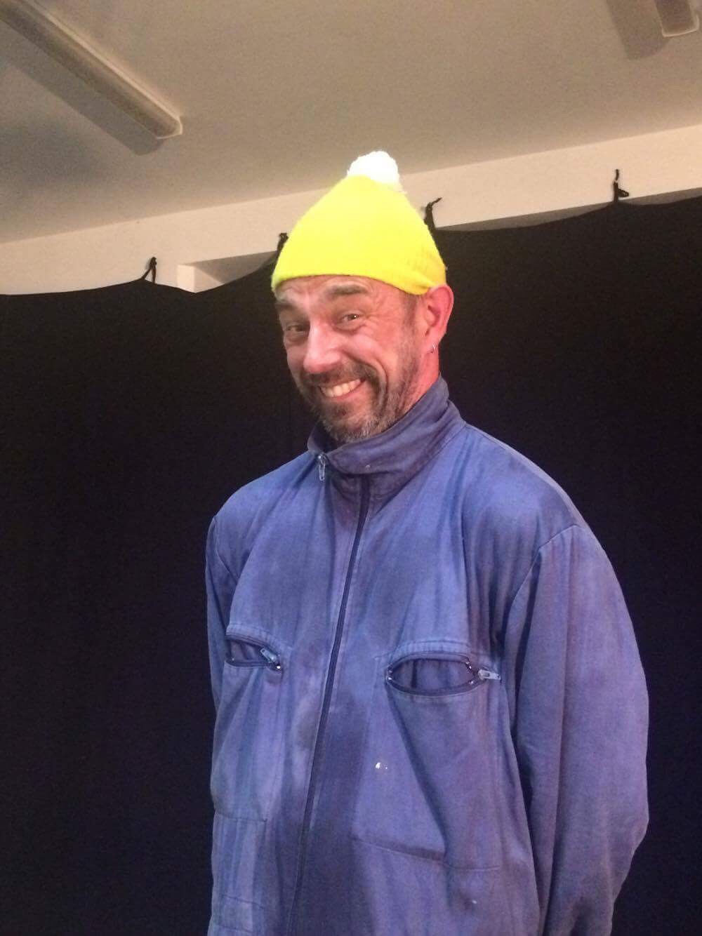 Dressed in blue overalls and a bright yellow bobble hat, Odjo does hilarious things with a banana, a seagull and other strange things.