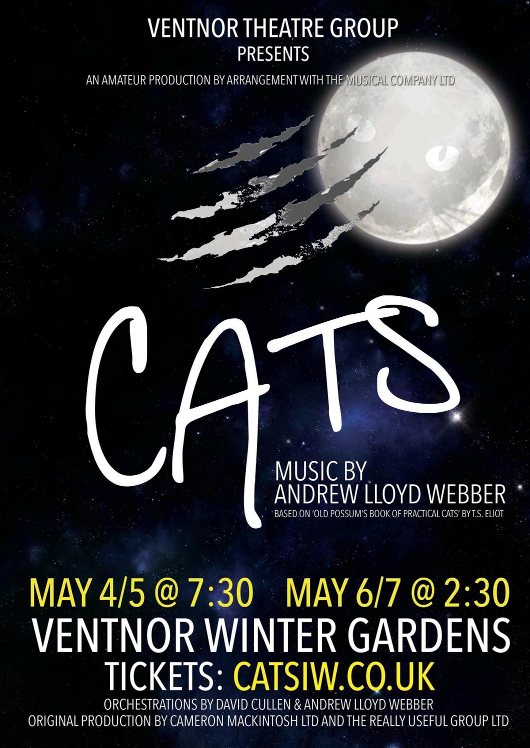 The definition of an ‘ensemble show’ must surely be Andrew Lloyd Webber’s Cats, and Ventnor Theatre Group’s production of this iconic 1980’s musical certainly followed this trend. Based on T.S. Eliot’s Old Possum’s Book of Practical Cats, it’s wordy, tricky and packed with nonsensical language – there’s not much of a story, but then the story was never meant to be the focus!