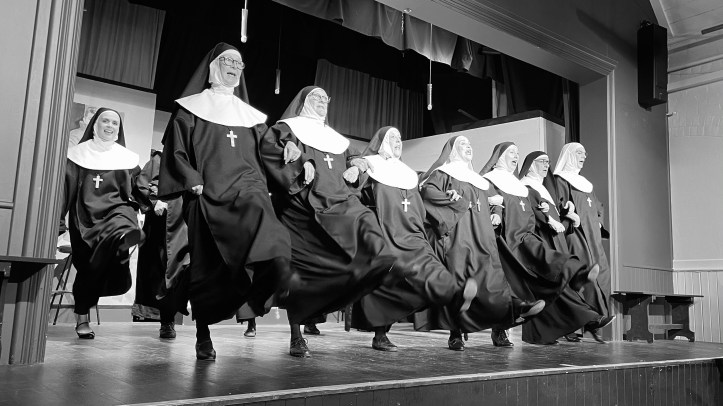 The setting of a village hall worked perfectly for the production. The story begins with the reveal that whilst we, the audience, may be watching a show, that show is in fact a fundraiser for the Little Sisters of Hoboken so they can bury four of their fellow nuns. Due to an ill prepared vichyssoise (pronounced vishy-swar), the nuns actually lost fifty-two of their sisters and for reasons only known to the writers of the show, the Mother Superior decided to buy a DVD player with what she thought was the leftover cash. This means that there are four nuns still on ice – that is, stuffed into the Mount St Helen’s School freezer, and we are here to attend a “talent show” to aid in their funeral costs. Oh and to make matters worse, the local health inspector is on their way for a surprise inspection.