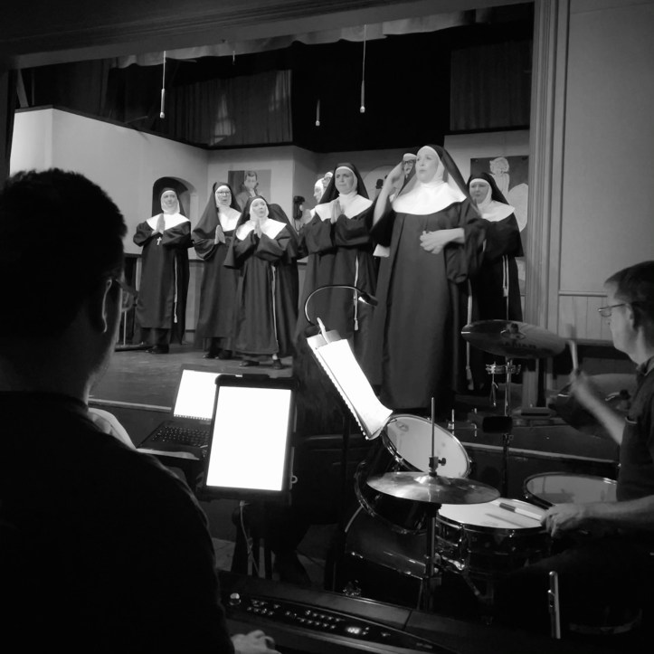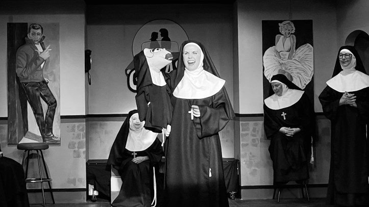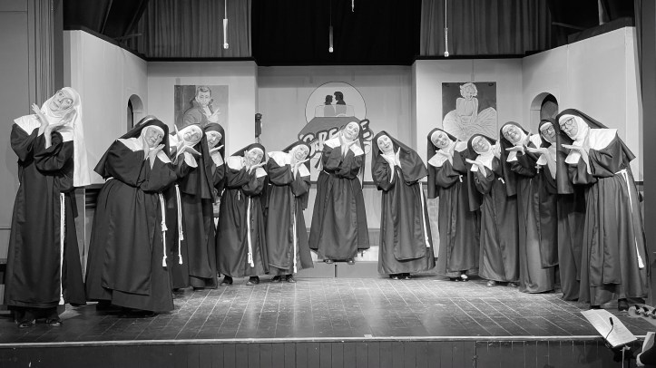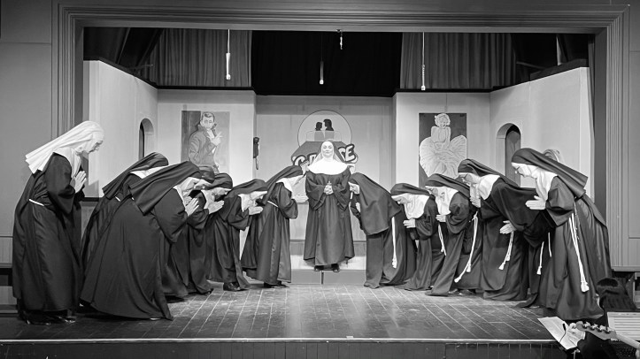 From the moment you entered Bembridge Village Hall, all illusion that you were going to watch a scripted play was thrown out of the window. From the friar-usher dispensing “Holy Water” – commonly referred to as sanitiser where I’m from – to the band and prompt sporting Dog Collars atop their Theatre Blacks; Nunsense by Bembridge Little Theatre Club (BLTC) made you instantly feel like you were within the show, rather than watching from afar.