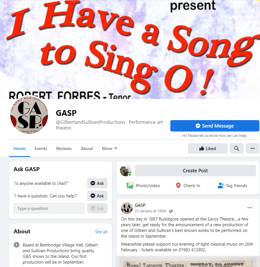 A brand new musical theatre group is making its presence known on the Island now that theatres are able to open with a little more confidence. GASP stands for Gilbert and Sullivan Productions, the name indicating the main focus of the group – to celebrate the work of the renowned Victorian librettist and composer and to stage some of their wonderful operettas, which are still just as hilarious and entertaining – and relevant – today as they were a hundred or more years ago.