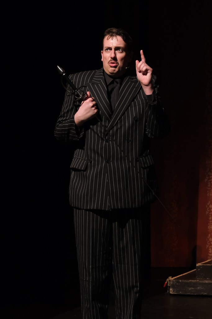 Swapping her Elsa robes for the iconic black dress and long wig, Natalie De Gruchy delivered a superb performance as Morticia Addams. With the subtlest turn of the hand or slight raise of the eyebrow, De Gruchy conveys the morbid matriarch’s frustration with her madcap family. Although no stranger to performing, Natalie is relatively new to musical theatre on the Island and what a great debut to the stage!