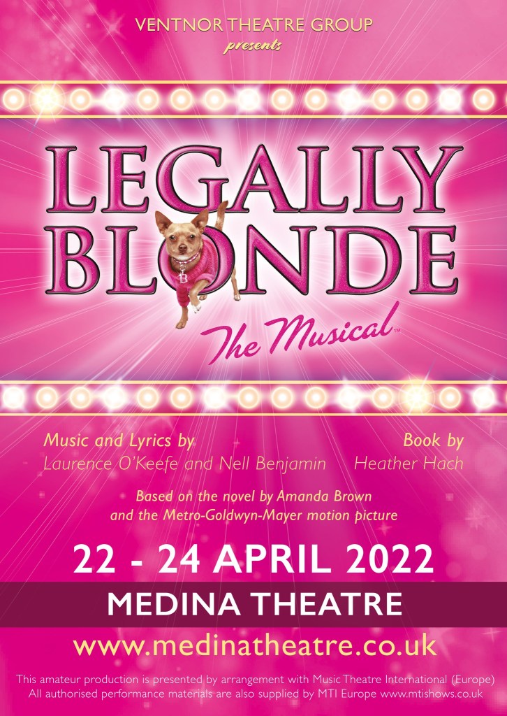 Director Verity Godwin and her creative and production team are to be congratulated – the standard of performances tells of a lot of very hard work and preparation: all they need now is an audience! So do yourself a favour: Legally Blonde opens tonight at Medina Theatre and runs until Sunday 24th May. Get tickets on 01983 823884 or online…. or there may be a few on the door on the night. The Independent called Legally Blonde ‘Ridiculously enjoyable from start to finish’ and that is certainly true of Ventnor Theatre Group’s production.