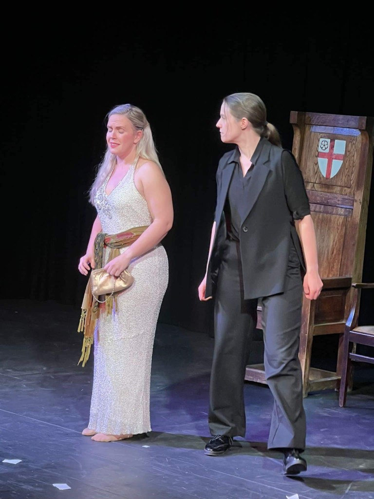 Emily Scotcher effectively performed Hamlet as a double-edged sword of endearing bravery and vengeful spiralling, her performance superbly conveying the moral greyness of the anti-hero lead. Her raw mental adversity of grief and the mischievous humour embodies a dynamic and dimensional Hamlet. The company’s consideration to remain close to the original Shakespearean play has left this for the audience to psychoanalyse- as part of the immersion! The ambiguity of maddened moments versus the harrowing soliloquies, each performed evocatively, really encourages the audience to immerse into the world of Denmark and question whether Hamlet is truly maddened by revenge or masking, dualling personalities. The approaches to the soliloquies were especially gripping and the raw emotion performed was great.