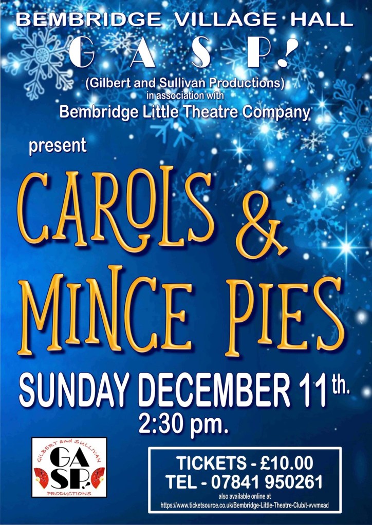 Fresh from the sell-out success of their first Gilbert and Sullivan show, ‘Pirates of Penzance’, in September, GASP are delighted to present an afternoon of Carols and Mince Pies at 2.30pm on December 11th. A fund-raiser for Bembridge Village Hall where the event is held, the show promises to get you in the Christmas mood with a mix of traditional carols and festive songs which you can sing along to – or enjoy listening if you prefer – along with a few seasonal readings and some lesser known musical pieces.