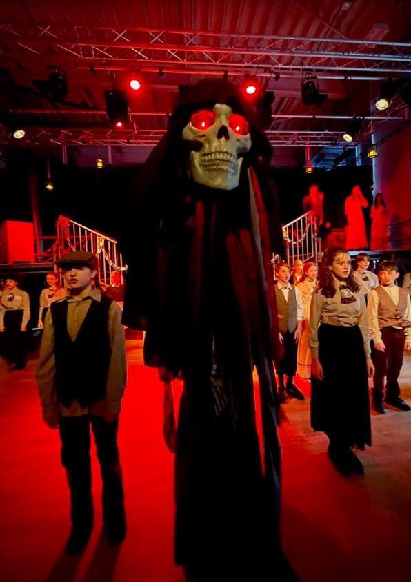 TIFS very own Mr Balch, not only starred as ‘Fezziwig’ but created an original score especially for the show. His song “Change your ways Ebenezer” in particular, was a real stand out ensemble number, where the audience were treated to the most impressive prop creation – The Ghost of Christmas’s yet to come.