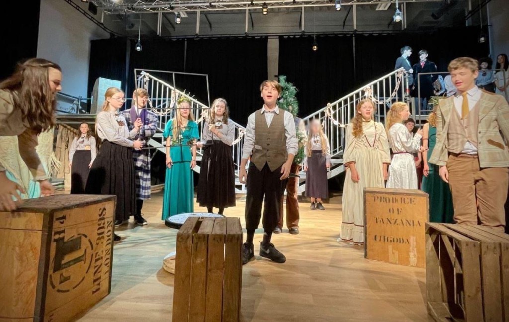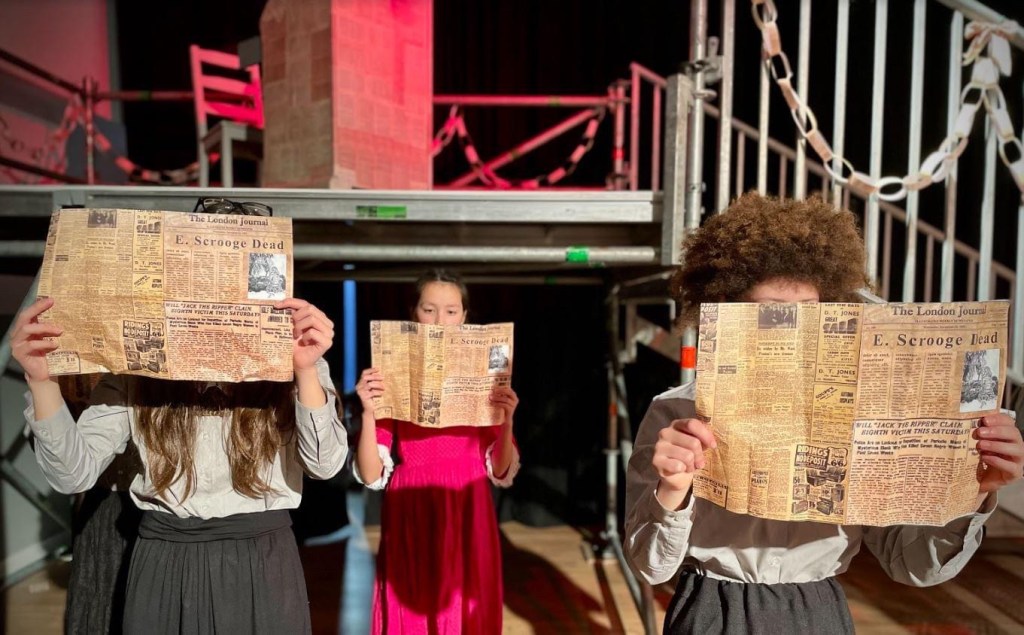 Last Wednesday, Thursday and Friday, pupils from The Island Free School took to the stage to perform their adaption of ‘A Christmas Carol’ and it was clear straight away that the audience were in for a real treat. The simple – yet effective rustic scaffold staircase set design, allowed for some scenes to be delivered up on separate levels, adding extra dimension. The hanging old style lanterns and chains, also looked extremely effective and really framed the stage area.