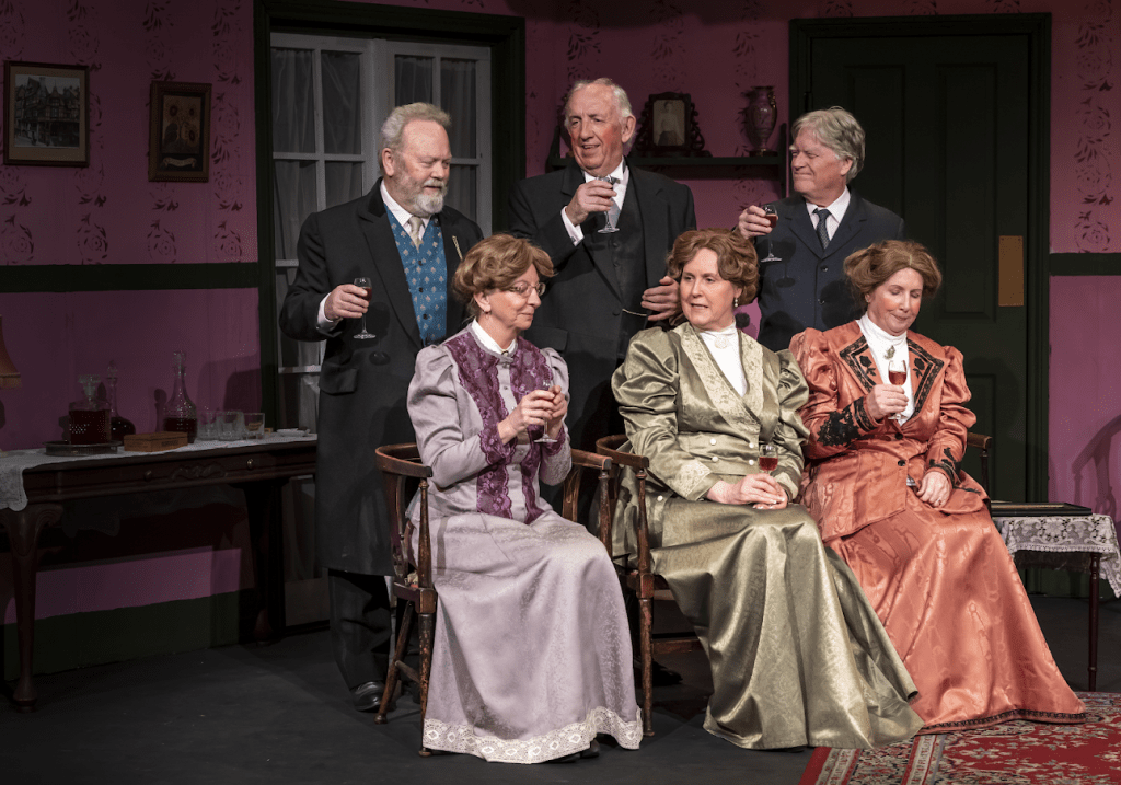 The set, props and costumes are also worthy of comment as they perfectly support the creation of an upper middle class Edwardian Yorkshire home. The ladies’ dresses in particular are not only period-appropriate but give an indication of each lady’s personality.