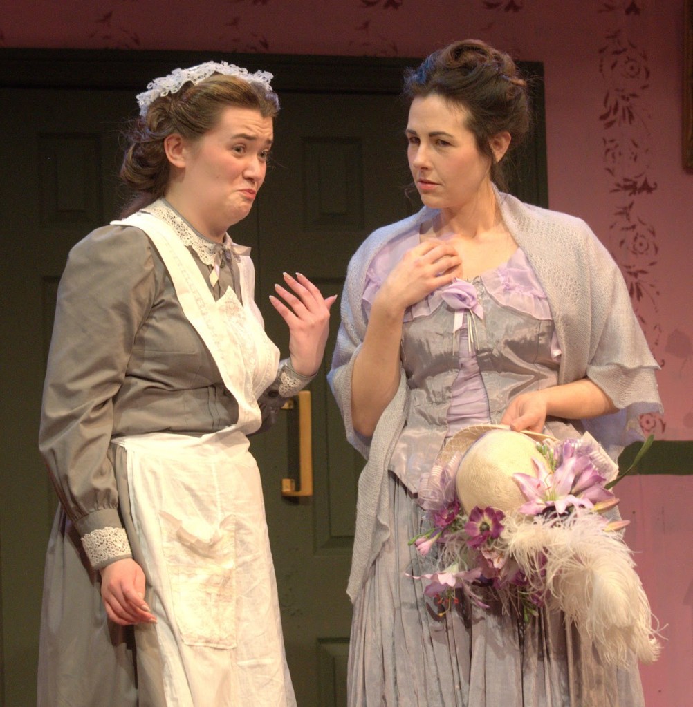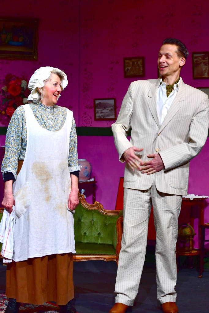 The talented Dave Newton is at his best as Gerald Forbes, the young organist, summoned to explain his own conduct, who then drops the bombshell news; the scenes between him and his paramour Nancy, played engagingly by Genevieve Dorling, are tender and sweet as well as funny. Ruby Bearman is suitably naïve and well-meaning as the maid Ruby, a wonderful foil to the gossiping, grasping Mrs Northrop who listens at doors and thoroughly enjoys spreading information about her social betters around the neighbourhood. Caroline Read, as Northrop, shows her great comic timing and delivery.