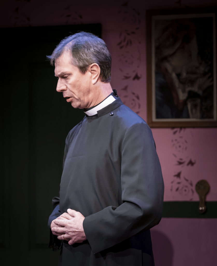 Ian Moth as Dyson even manages to garner a few laughs in his short time onstage – a tribute to his experience and talent – and John Abraham’s performance as the Reverend Clement Mercer who calls to offer his pastoral solicitation to the poor unmarried sextet also shows his experience and comedy talent.