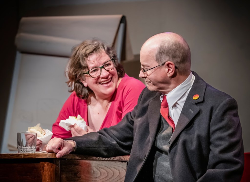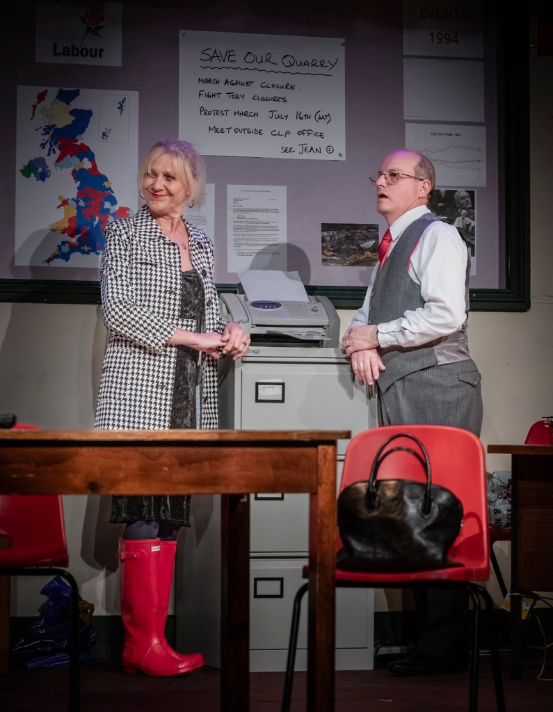 Helen’s cream tea may have been questionable, but her portrayal of Jean Whittaker was anything but! She gave Jean a gritty charm and innate likeability, while Pete’s more highly-strung David had a ‘heart of gold’ quality that had the audience rooting for him to get the girl, even if he ultimately lost the seat. The emotional rise-and-fall of the play between seriousness and silliness could not have been in safer hands.