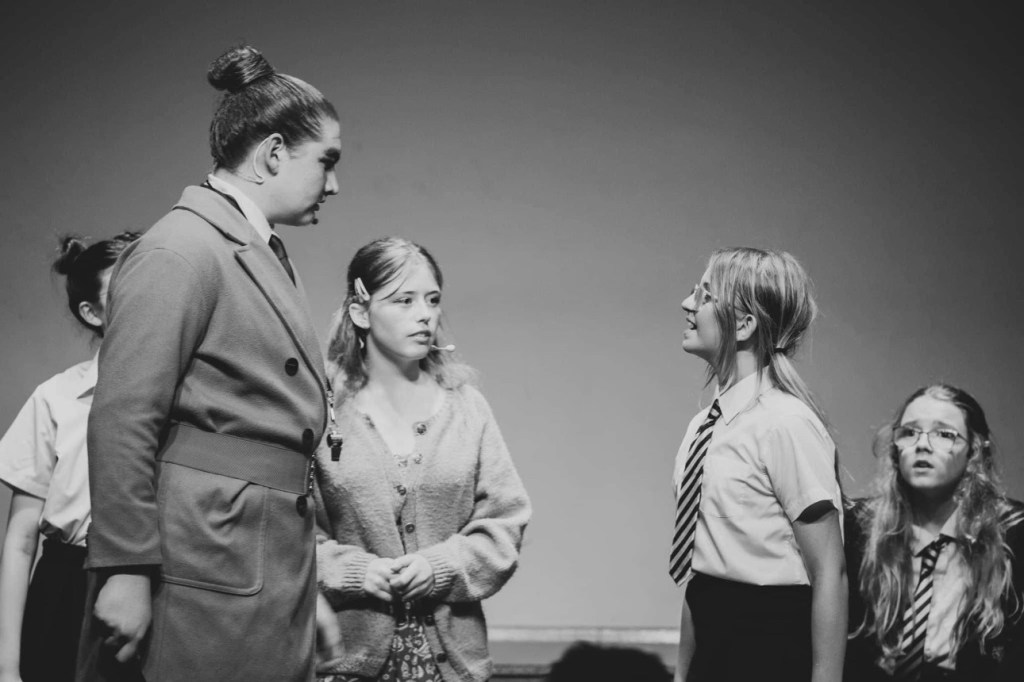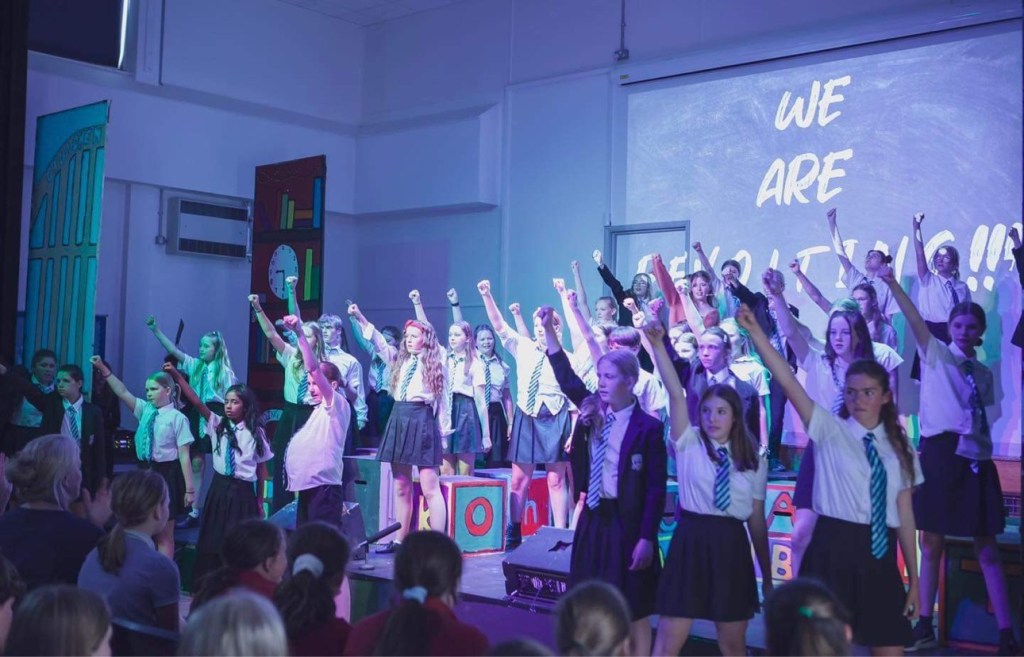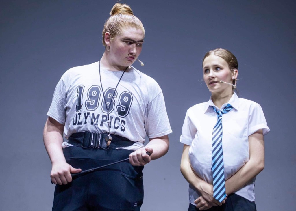 Many of the songs are complicated to perform, but the students of The Bay School were up to the challenge – the aforementioned fingers were replaced by characters popping up to deliver solo lines, gradually building into the chorus of ‘Miracle’ as tables seemed to melt away to allow the chorus of parents to join in: choreography (of dancing and stagehands) appeared effortless and the audience were carried away by the ensemble singing which dramatically broke to bring forward the main character, Matilda, whose plaintiff solo about her parents’ view of her gave a bleak contrast to the main song. It was clear that a huge amount of hard work had gone into delivering such a powerful song with apparent ease.