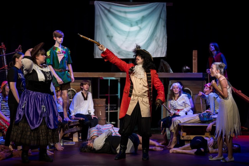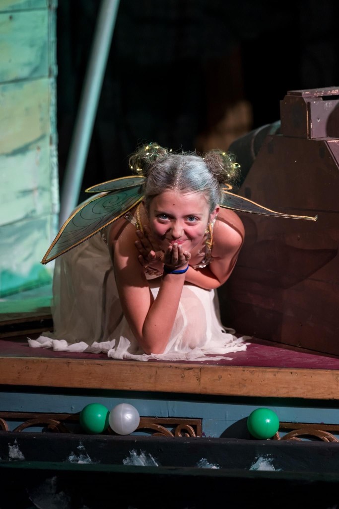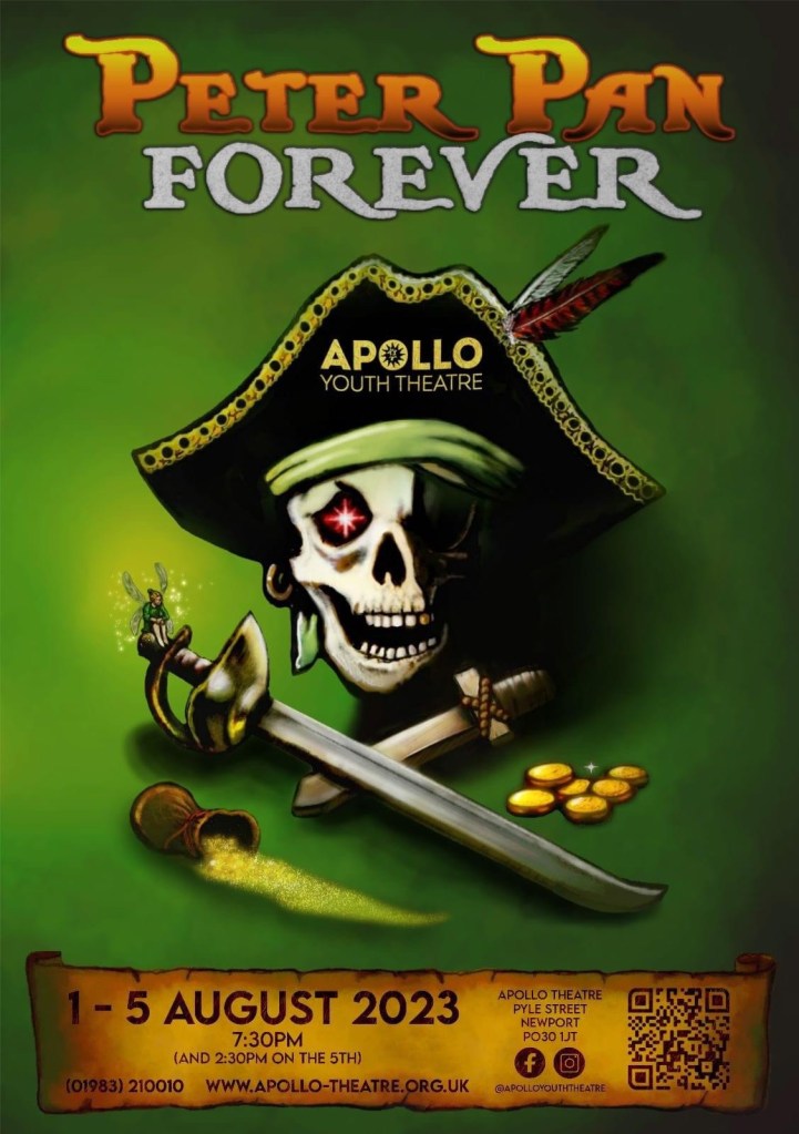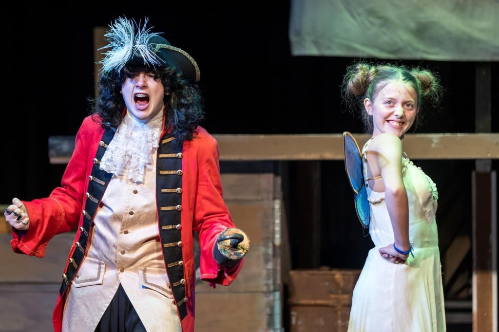 The Youth Theatre’s new production of Peter Pan Forever, cleverly directed by Mish Whitmore and written by her imaginative husband Karl, is full of energy, laughter and drama – the perfect tonic for the wind and rain outdoors. J M Barrie’s beloved characters are well known and all set for us to meet in Neverland, including Captain Hook, Tinkerbell and Peter Pan himself: this is as close to panto as you are ever going to get in August!
