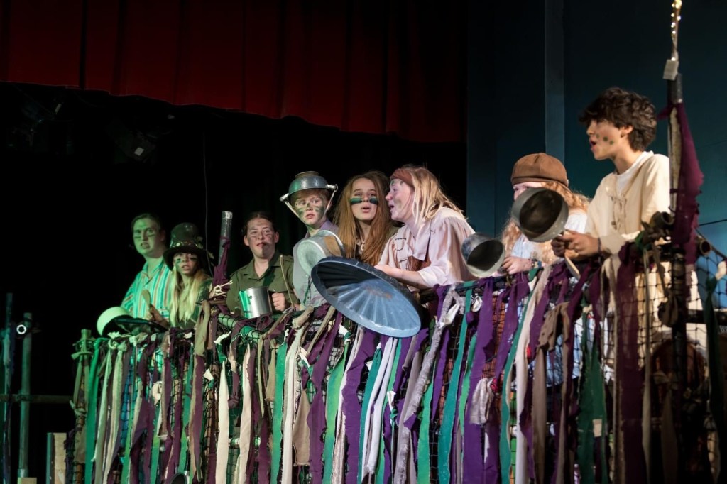 The large cast are confident and well prepared for their roles – but it is the superb set which really stands out in this production. As soon as you enter the theatre you know you’re going to be in for a fantastic performance with an enormous scaffolding frame, including a high crow’s nest, ball pit and even a tyre swing. The cast use every inch of the stage to its capacity, with so much leaping, creeping and jumping around for the full two hours.