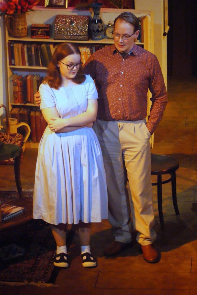 I admit to having approached this production quite nervously, having taken such a dislike to the main character (Kristen or Kristin? – your proofreader couldn’t decide) when I read the play some time ago, that I was prepared for an evening of suffering. The formidable contributions of Ginnie Orrey as Kristin, and Paul Gwinnett as Hugh, changed my view – perhaps transformed is the better word, – so that I regretted it was the last night, as I would definitely have wanted a second viewing.