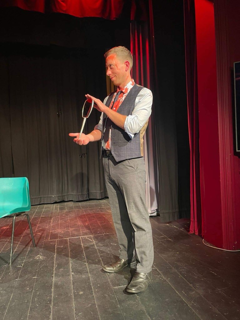 The core relationship of the play of course, is the dysfunctional doomed relationship between the Macbeth’s. Simon Lynch gave the part a real brutish physicality that stomped around the slightly too tiny stage and complemented well the parts where we saw Macbeth tormented by his fragile sense of toxic masculinity as much as the hideous acts he has commited. Emily Scotcher played Lady Macbeth with a wide range that went from malevolent glee at killing King Duncan (played by Paul Stevens) to cold calculating dread at how far her husband had fallen in madness. They bounced well off of each other and were aided in some strong performances of note from Joel Leverton’s Banquo. Watching his shrewd mind piece together Macbeth’s treason and his intelligent natural delivery was a real highlight.