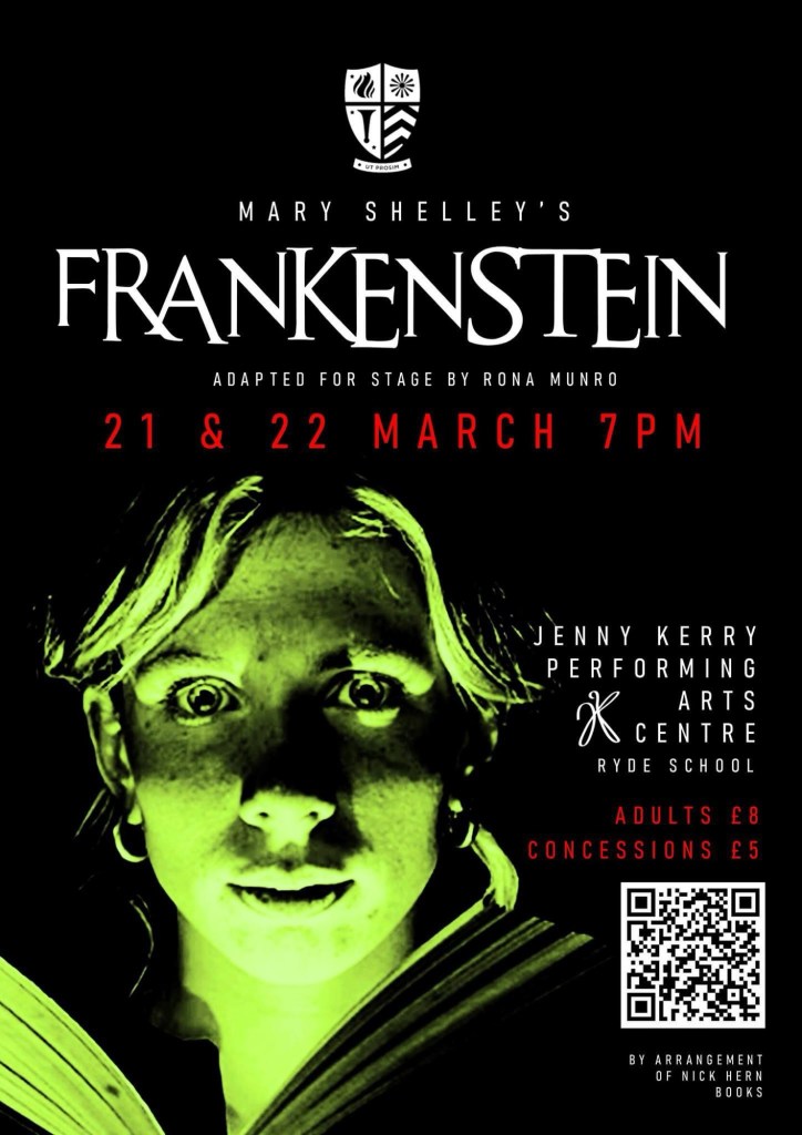 “Frankenstein”, the play of Mary Shelly’s infamous book was put on by Ryde School with Upper Chine to a twistedly dark and rapturous reception from its audience last night. Using an adaptation by playwright Rona Munro which bravely casts Mary as a character in her own work, this bold and brave piece of theatre was certainly a striking thing to watch.