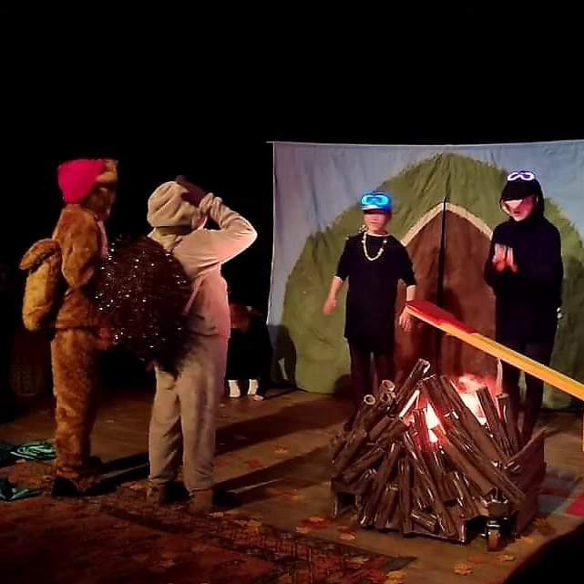 We then met Badger (Isla Rea) – again a great costume. Isla captured Badger’s knowledge and love of talking very well – whether the other animals were listening or not. Badger also made a good pairing with Henry’s Dad (Freddie Hollis) as they went looking for the missing William and Henry – I also liked the use of lanterns on a darkened stage to represent night time. Lighting was effective throughout, giving a clear indication of night/day and the seasons changing from autumn to winter to spring – Harry Spencer did a great job.