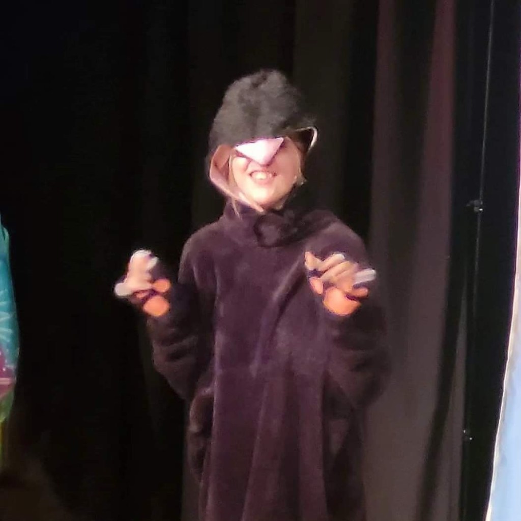 Rose Parker was perfectly poised as Saphie Swallow and like the other characters her costume gave a good indication of her character – I especially liked the fringes on her arms representing wings, which she used to great effect. In fact, all the costumes gave a clear indication of the animal characteristics, and Sally Spencer is to be congratulated for her work here.