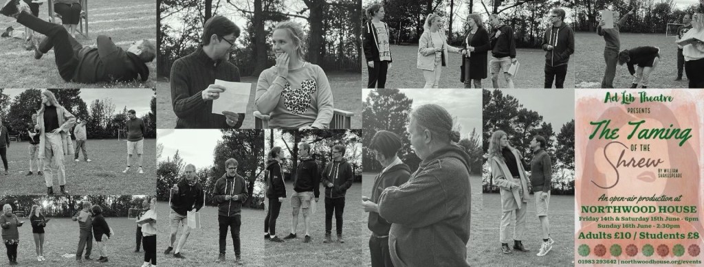 The Taming of the Shrew…or is it? Come to the grounds of Northwood House this June (bring a picnic) and find out as we at Ad Lib bring you our latest Shakespeare producton on Friday 14th and Saturday 15th June at 6pm with a Sunday matinee at 2.30pm on the 16th.