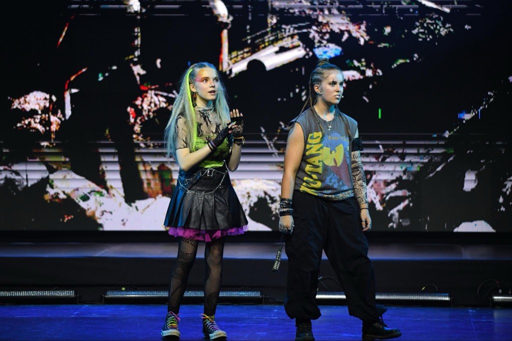 A musical set in the distant dystopian future, it features a catalogue of Queen classics. It is no mean feat to hold your own against these iconic songs, but that’s exactly what Lilly Valvona did. This young star was captivating throughout as Gallileo – flawless vocals, with an energy to match that helped keep the show flowing. Complimenting her was Florence Bellamy in fine voice as Scaramouche. The pair were at the helm of many of the show’s musical numbers, and should be very proud of their performances.