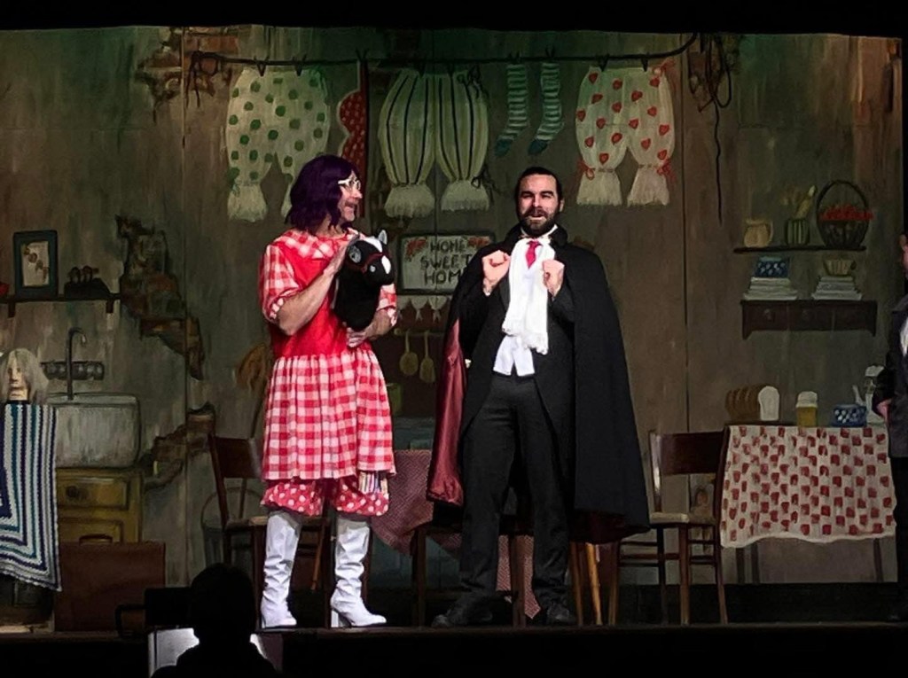 Helping Duffy in her crusade against the undead were Fred Corpuscle, played ably by Maddie Cox, and Rema Globin by Lexi Skeldon-Downer. Against them was the formidable Count Dracula aka Major Artery, enthusiastically embodied by Tom Turner, gleefully devouring scenery and channeling the Lord of Darkness by way of Matt Berry. Duncan Greaves showed off his comic improv skills as Dame Plasma and did a lot of heavy lifting when it came to interacting with the audience, props also goes to him for entertaining the crowd during a technical problem during the first half of the show that I saw.