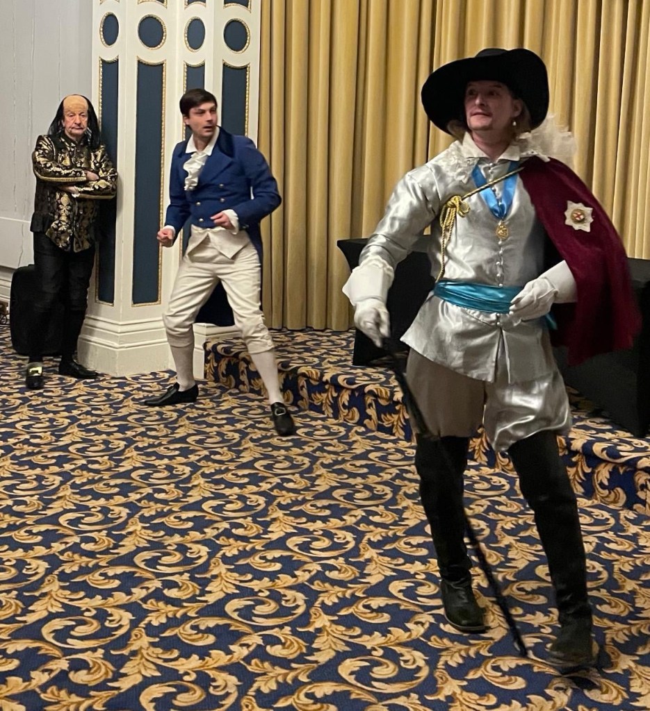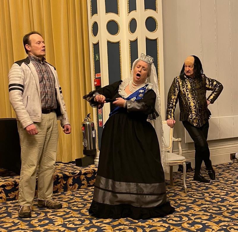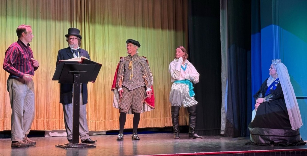 The premise is simple but effective. Karen (ably played by Donna Wearen) pretends she can see ghosts to impress the public on her Island Ghost Walks. Unbeknownst to her however, the Ghosts really ARE there and what a formidable bunch they are. Special plaudits go to Libby Pike’s ebullient Queen Victoria – surely a close relation of Blackadder’s spoilt Queenie – and to Andrew Wilson Jenner’s Shakespeare who makes a persuasive case that his plays should be staged not read, much to the vocal agreement of the Bembridge audience. I particularly enjoyed the rivalry between Shakespeare and Keats (handsomely played by Philip Barker) and Shakespeare’s bon mots at the expense of the others. When told that Karen is a Medium, he tartly replies that she looks ‘more of a Large’ – just one of many little asides that hit the spot throughout a packed couple of hours that fly by in such convivial company.