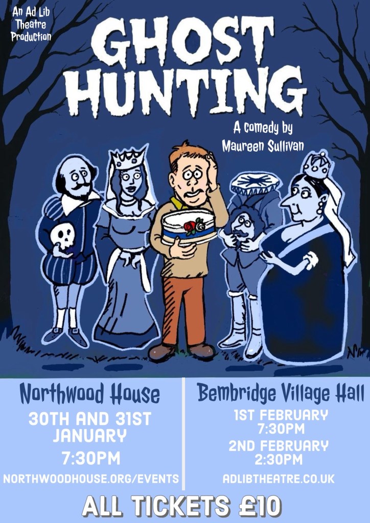 Any play that opens with the haunting voice of Terry Hall from The Specials ‘Has me at hello’ as it were, and Ghost Hunting by Maureen Sullivan does not disappoint. Packed with gags and full of Island history, this comedy was well received by the Sunday matinee audience at Bembridge Village Hall.