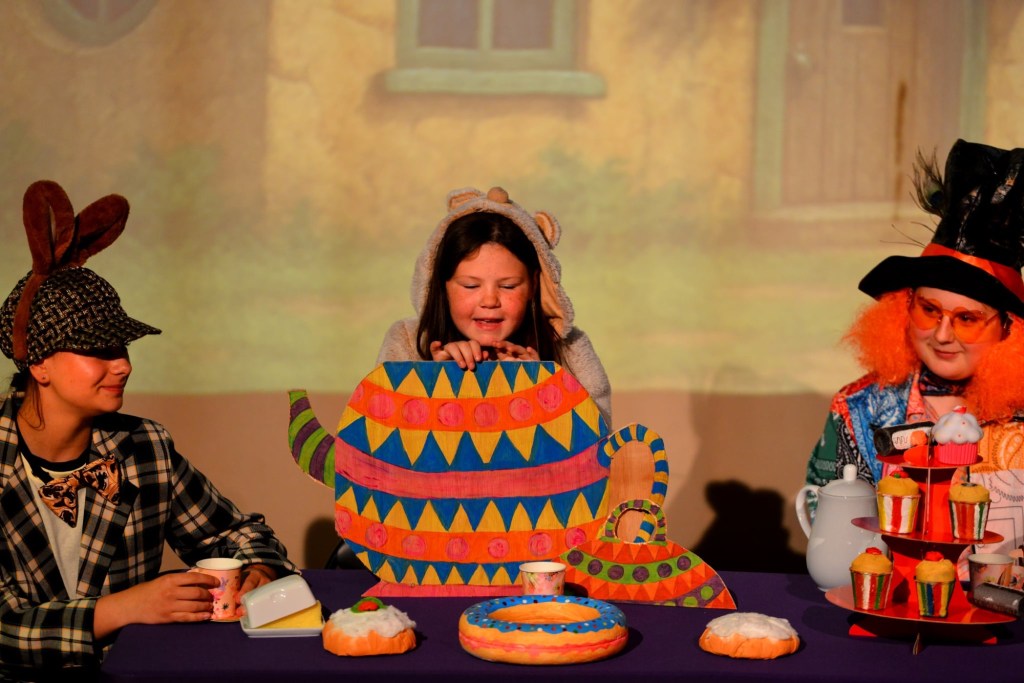 For the team and young members of Get On Stage it is not about creating the most polished productions, but making all aspects of theatre fun, with their weekly sessions including time spent on behind-the-scenes elements of a production, in addition to the standard Triple Threat. This was evident in Alice The Musical, where the whole cast had contributed to the artwork of the set and props.