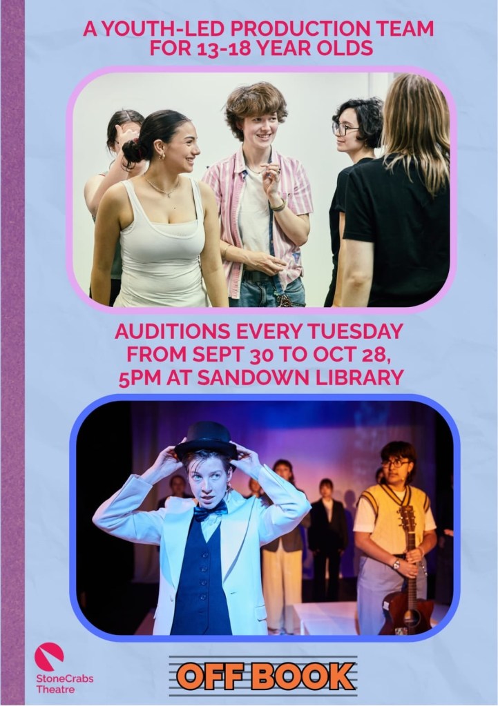 They are holding workshop auditions every Tuesday from 30 September to 28 October at Sandown Library from 5pm to 6.30pm. No previous experience is necessary. If you are interested, follow the link below and fill in the form – or just turn up to audition!