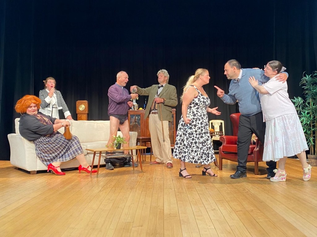 Mathew Northard played the drunken Walter, Gertrude’s father, who refused to be kept out of the way – his secret raids on the sideboard for more drinks were very funny. Graham Andrews combined directing duties with the role of the Reverend Jenkins, in which he shone – and I know how hard it is to be on stage and directing too. The scene in which the vicar is given some ‘medicinal’ brandy is a highlight of the show! Elaine Smith showed her stage experience as Burrows the maid, and the cast was completed by Isla Wight commanding the stage as the formidable Lady Astoria Featherstone.