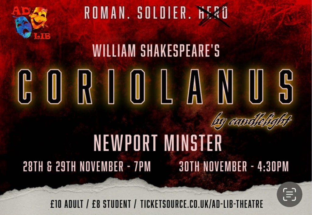 Following the success of their open-air June production of Julius Caesar, Ad Lib Theatre Company are back with another tale from Shakespeare’s Roman set, this time by candlelight at Newport Minster.
