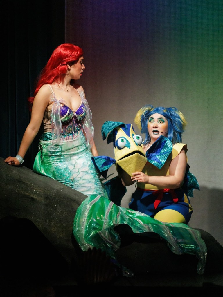 Leading the cast in the titular role, Ariel, we have the powerhouse Ava Cowan. Her performance of ‘Part of your World’ was utterly breathtaking. Her grace, poise, charm and excellent vocals truly shone as she swam through the show. Her effortless ability allowed the audience to feel like we were part of her treasure trove, immersed in her world and enjoying the journey. A standout performance if ever there was one!