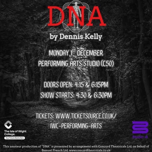 This is the theme, and the challenge, of DNA, as the friends come together to deal with an appalling situation. The Performing Arts students of the IW College set the play on a black stage, bare save for a black stage block, throwing the emphasis on the performances.