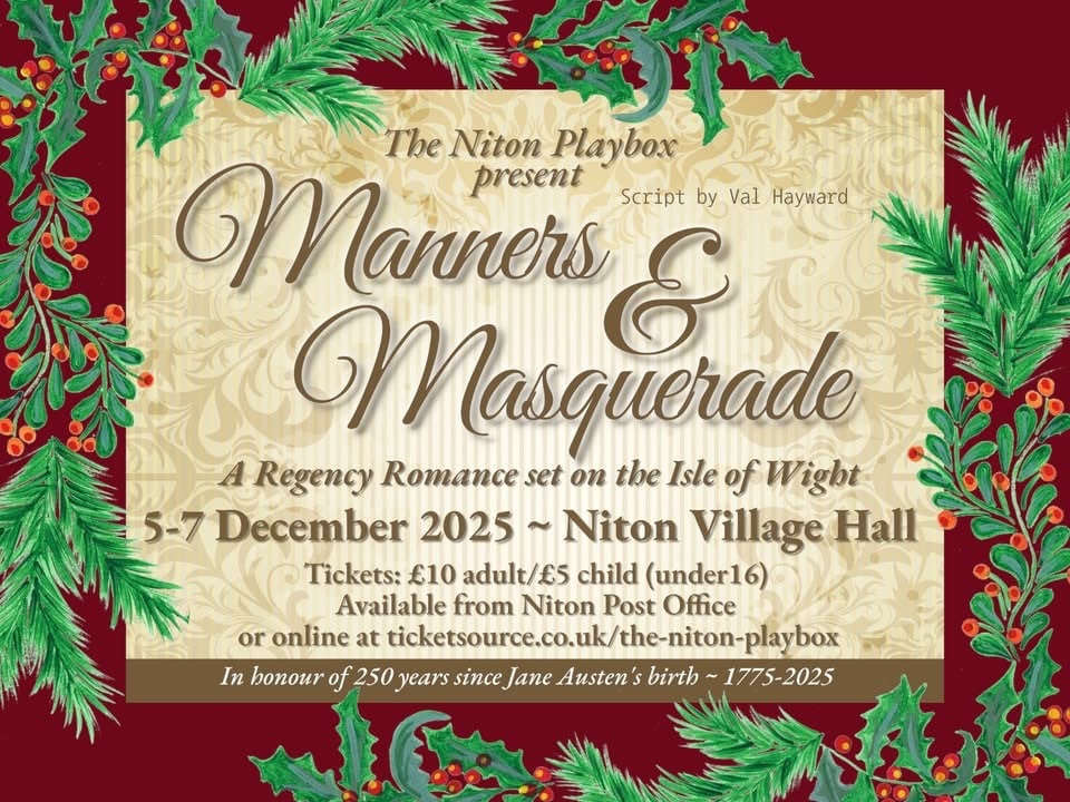 Having seen the previous Niton Playhouse shows, and hearing this one was again penned by Val Hayward and a celebration of the 250th anniversary of Jane Austen’s birth, I came to Niton Village Hall with extremely high expectations – and I’m delighted to say they were more than met. What a fabulous way to spend a Sunday afternoon!