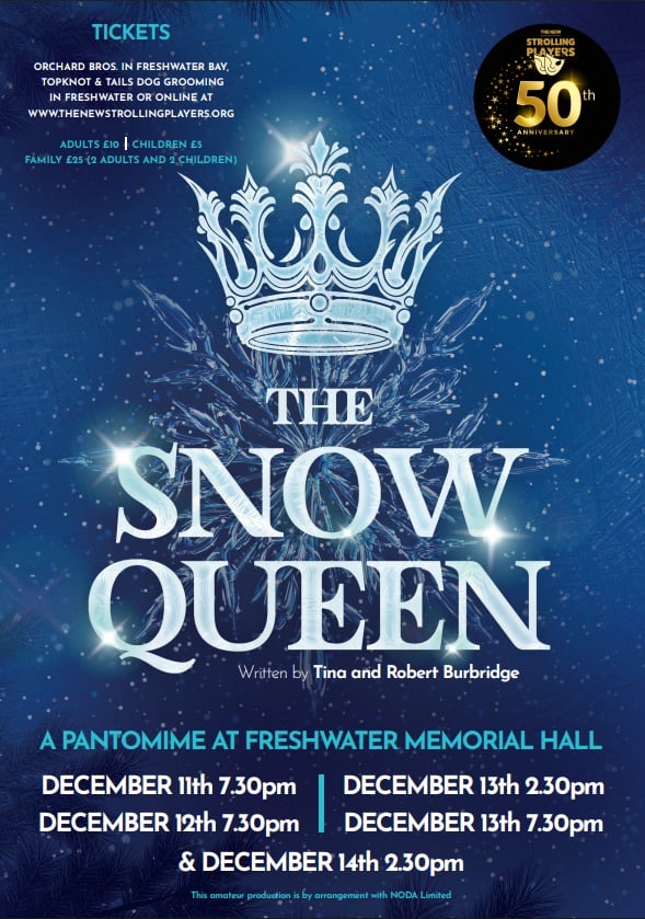 In our first visit to Freshwater Memorial Hall, we were greeted by a wonderful community venue which had been fully prepped for a Christmas Panto feast! Frosty turrets adorned the stage and we were glad we had arrived in plenty of time to grab some good seats with a great view of the stage. This performance along with all of the others were completely sold out!
