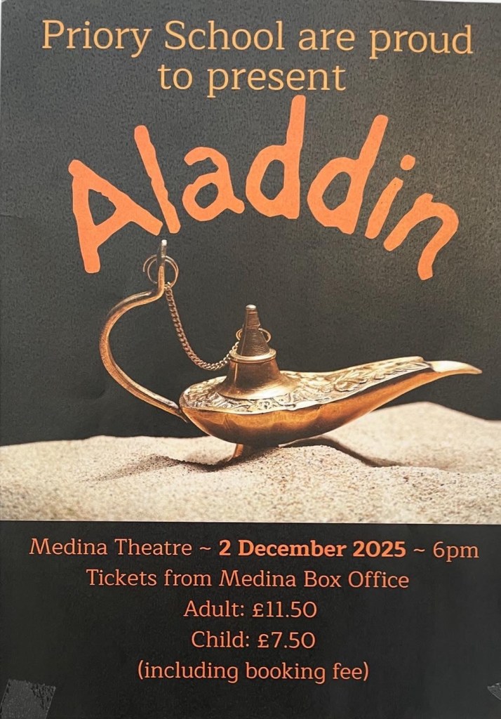 What a joy to see this wonderful panto, performed by all ages to a welcoming audience of parents, family and friends. The young people made the most of every part, from the cheeky Aladdin and the wicked Abanazar, to the polished dancers and the youngest member of the ensemble; not forgetting the large team of backstage helpers. The script simply zipped along, with sparkling dialogue heard throughout the large Medina Theatre without microphones; and well-chosen songs gave further opportunities to shine.