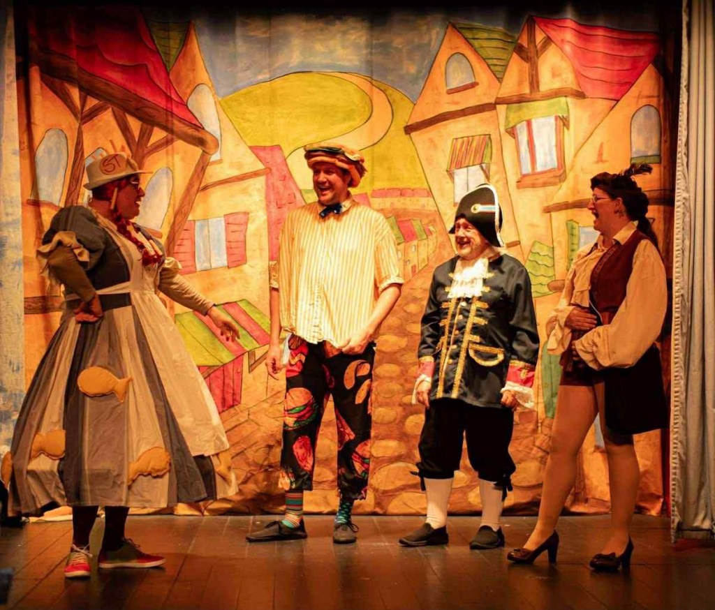Accompanying the comic treasure adventures of the Crusoe family were a range of ensemble numbers including a spirited maritime-themed tap number, ‘Cannibal Carnival’ and a jaunty Pirate sea shanty. The youth chorus were a great support to the production and managed to bring enthusiasm to their parts in the play. The adult chorus also managed to weigh in with some witty one-liners and brought depth to the ensemble dance numbers. Troy Harris and Alan Peelo are worth a notable mention for their levels of energy and delivery of solo lines especially as the Baker and the Candlestick Maker- we enjoyed their performances very much.