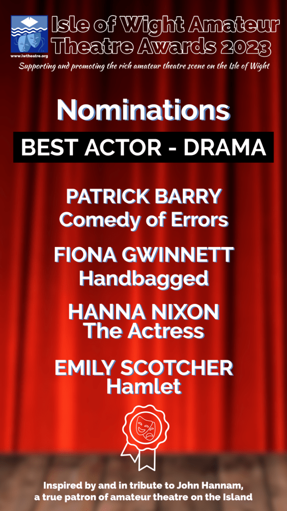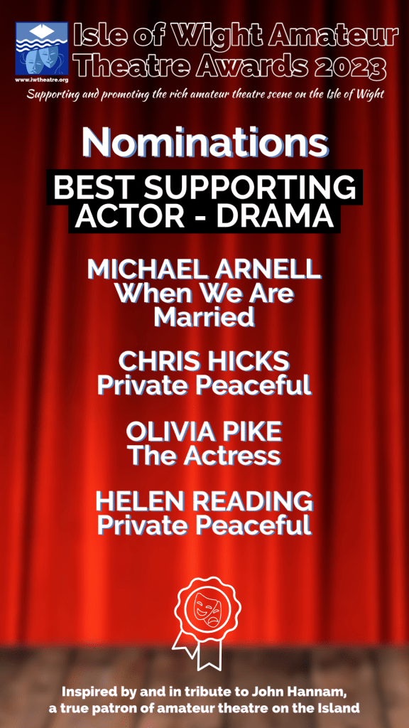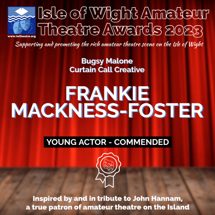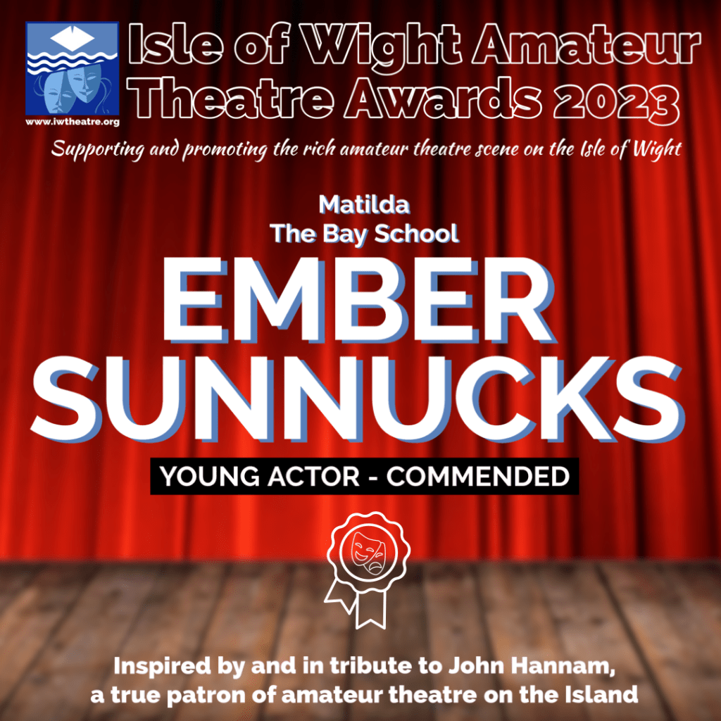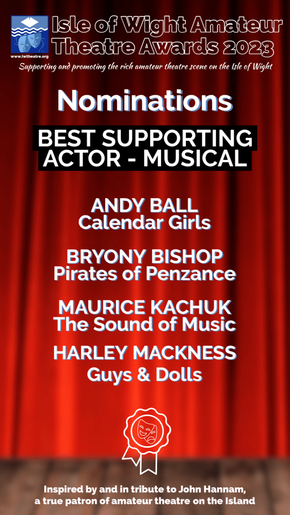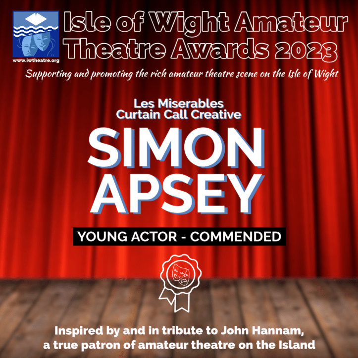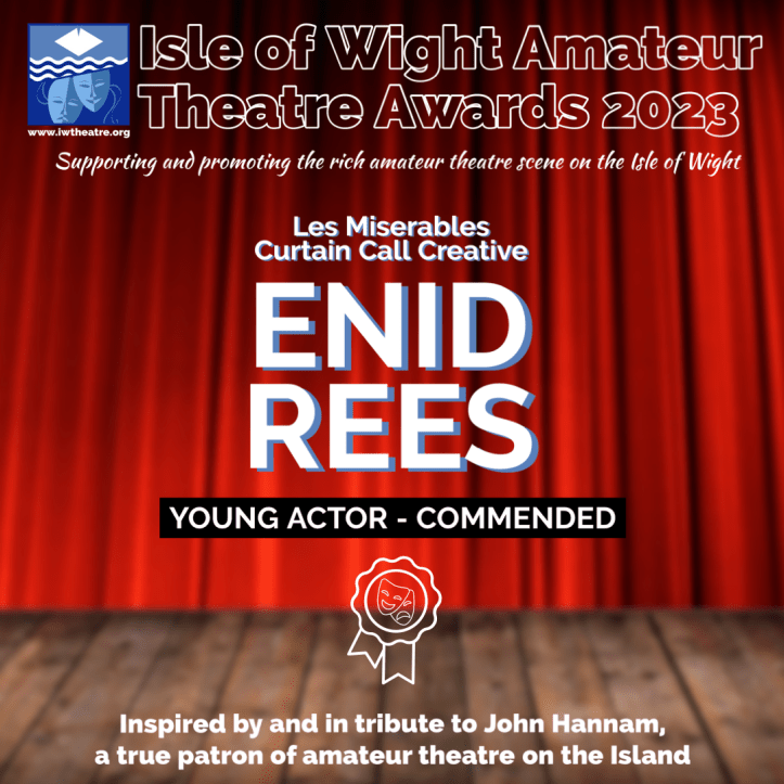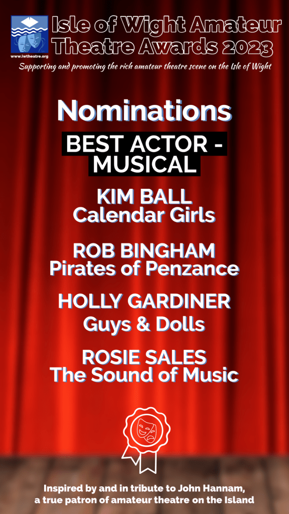 We would like to congratulate those receiving awards and commendations for their achievements but also to compliment all the casts, crews, background supporters and all involved with the productions judged this year. IW Theatre wish you every success in the future, and remember, please email us at contact@iwtheatre.org with any feedback or constructive ideas as we start to look at the judging process for 2024.