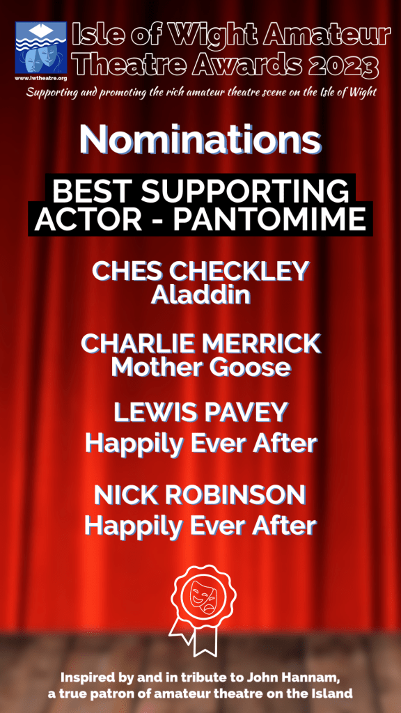 We are delighted to announce the inaugural IW Amateur Theatre Awards, hosted by IW Theatre, for the year September 2022 – August 2023. Our judges have enjoyed attending a wide range of amateur plays, musicals and pantomimes and after careful discussion have selected what, in their opinion, represents the very best that the Island amateur theatre community can offer.